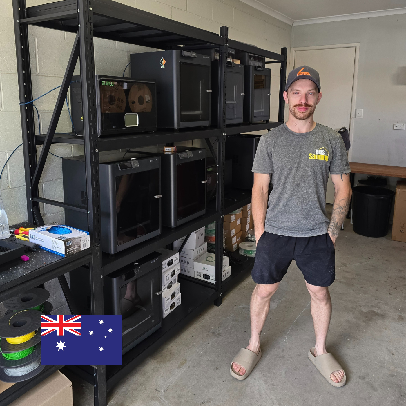 (In the picture: The founder James, standing where he manufactures the sanders)